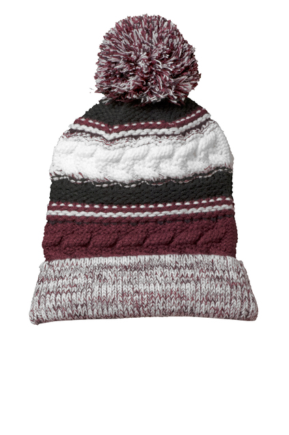 With three team colors and a large pom pom, this chunky-knit beanie will help keep you warm in the stands.